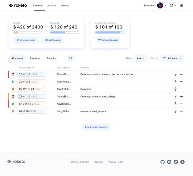 Business branch of Roketo, a crypto streaming service which allows paying people by the second